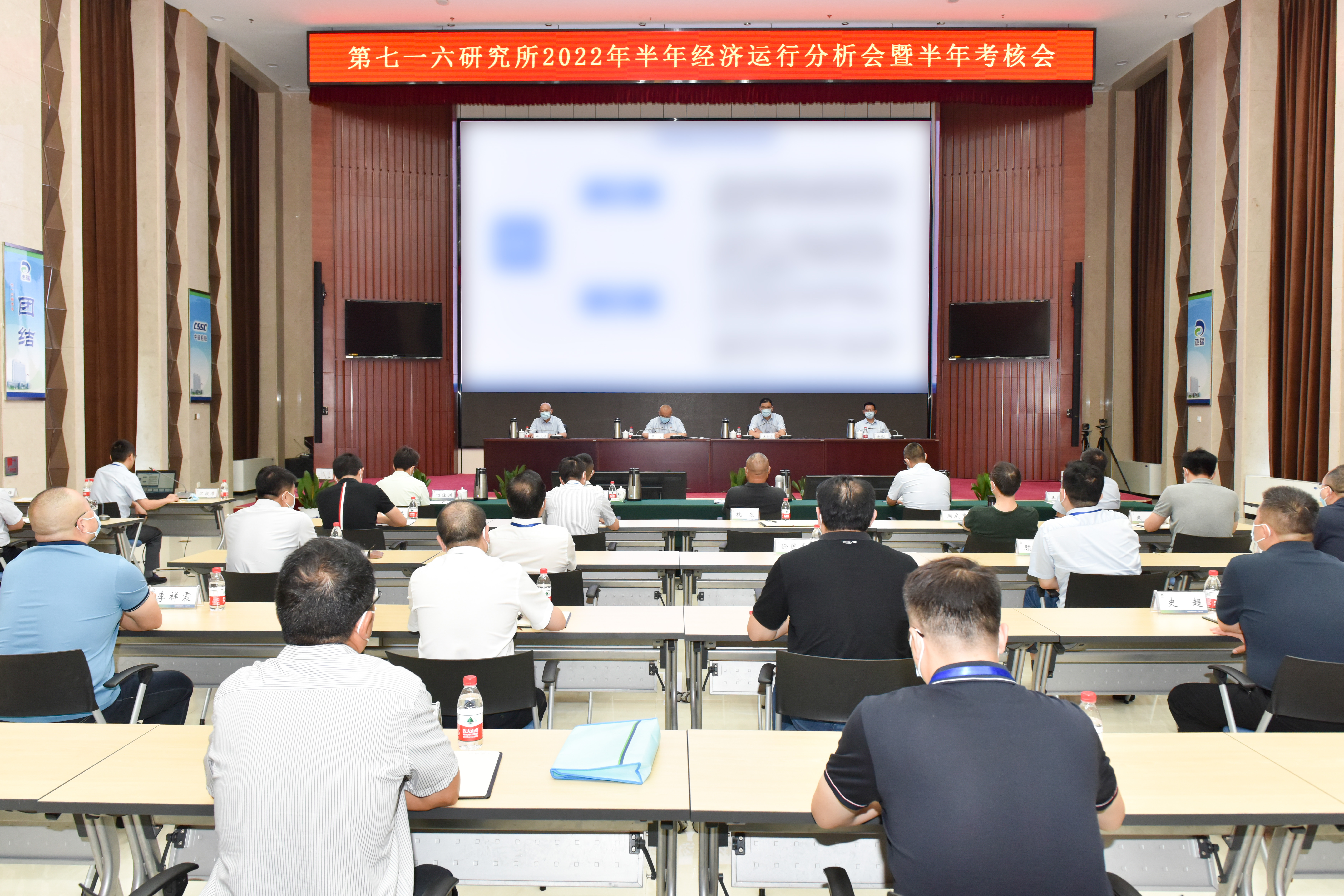 7月25日上午,中国船舶集团第七一六研究所组织召开2022年半年经济运行分析会暨半年考核会。会议由所党委书记王松岩主持,所长顾浩做工作部署。所领导、所高级专务、所长助理/专务、全体中层干部、集团和所技术专家等参加会议。